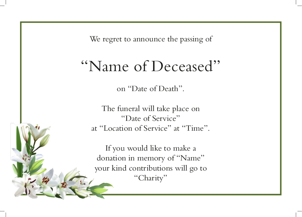 Funeral Order Form