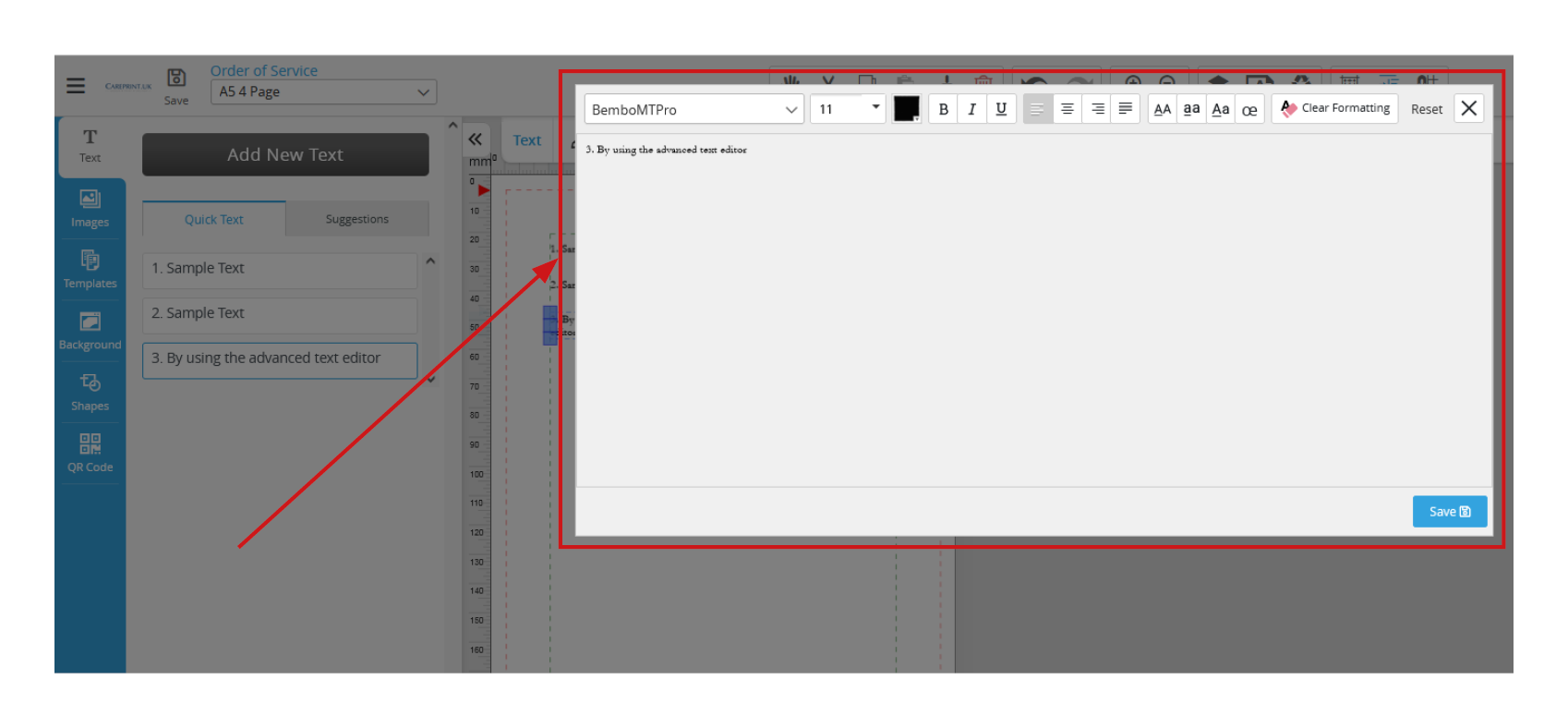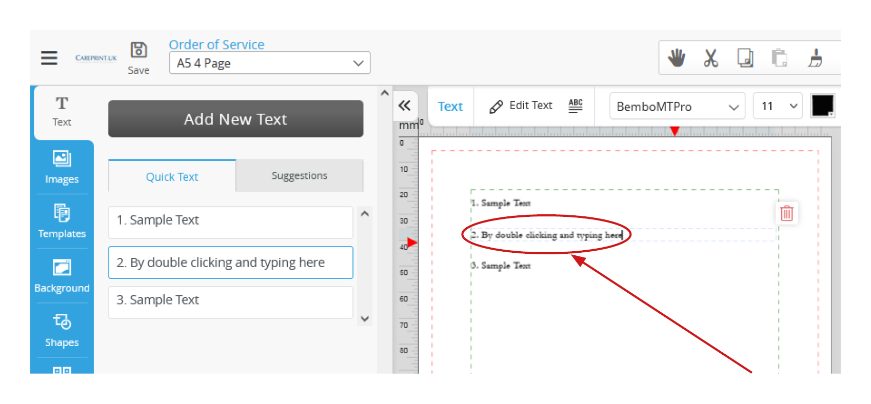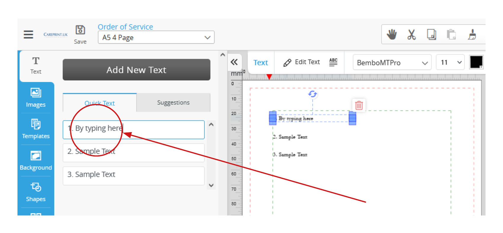 - Typing here will also change the text on the quick text collum (as seen on the left hand side).